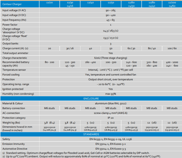 Victron 12V 60A Multi-Bank Centaur 12/60 (3) Uin 90-265VAC/45-65Hz Battery Charger